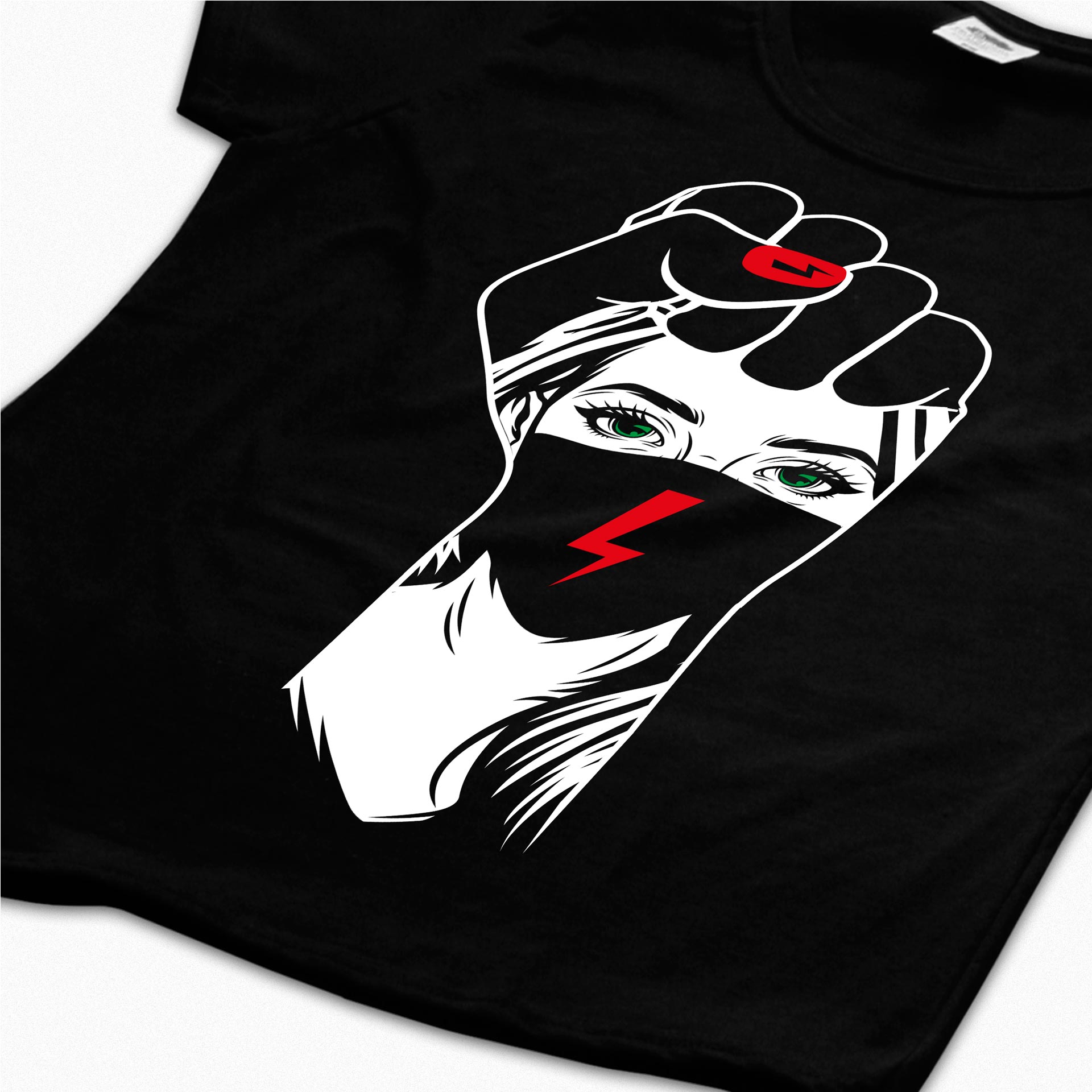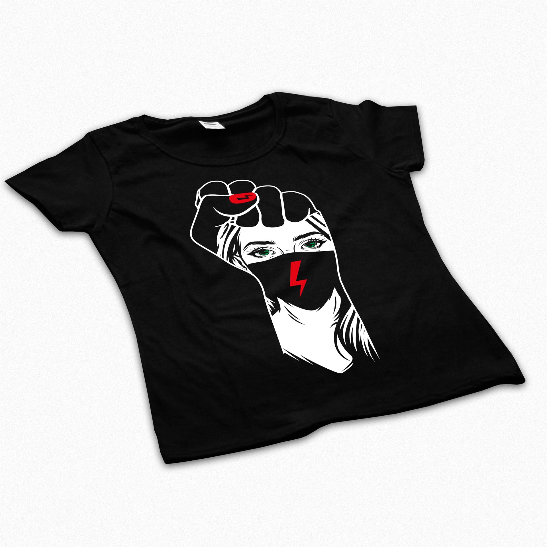 Koszulka z pełnokolorowym nadrukiem w formacie ok. 21×42 cm.